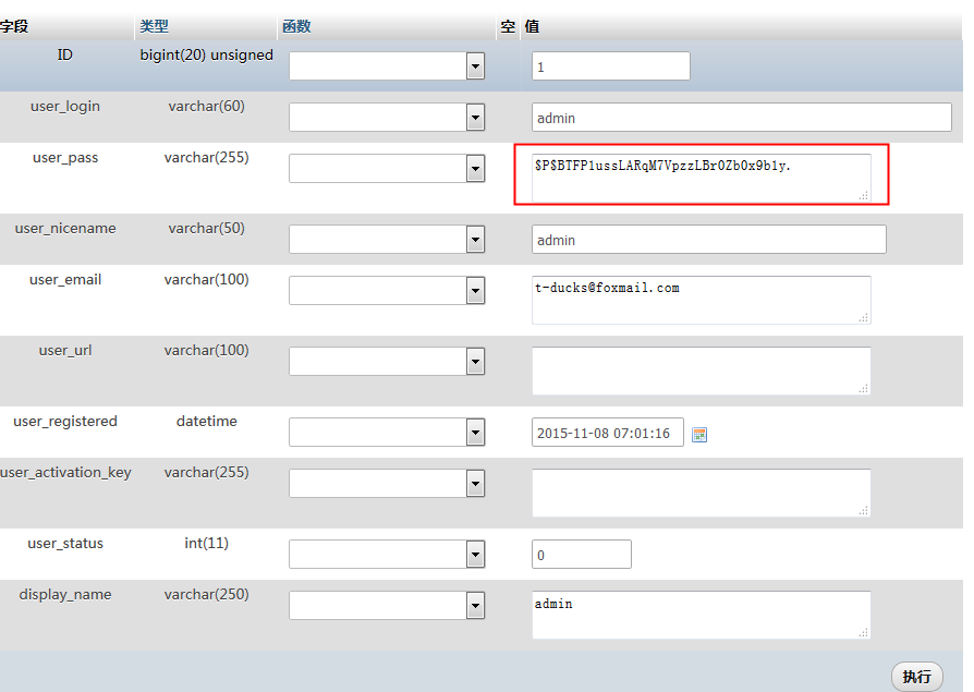 点击执行,现在admin的账户就可以通过hello登陆了,登陆之后通过个人资料修改好你的密码即可。