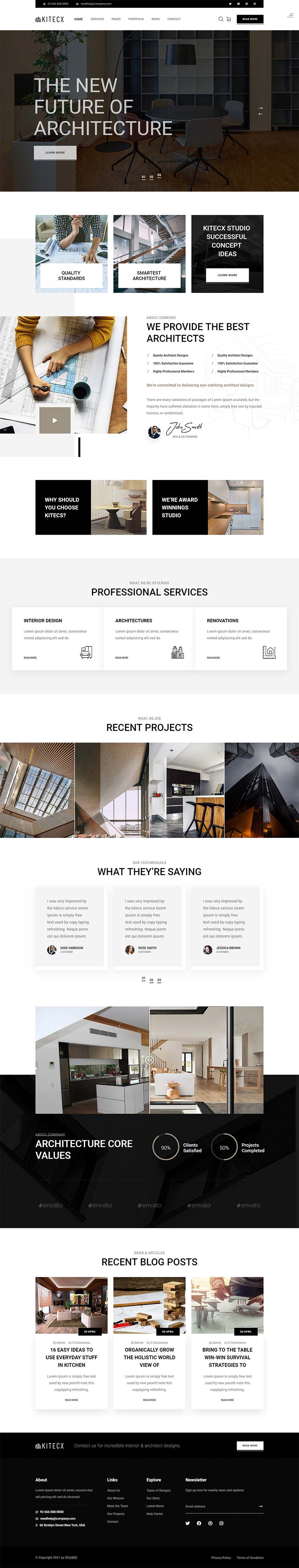此款模板非常适合任何建筑设计类、室内设计、品牌设计、平面设计……等企业网站。包含3个主页,可任意修改定制,美观大气。